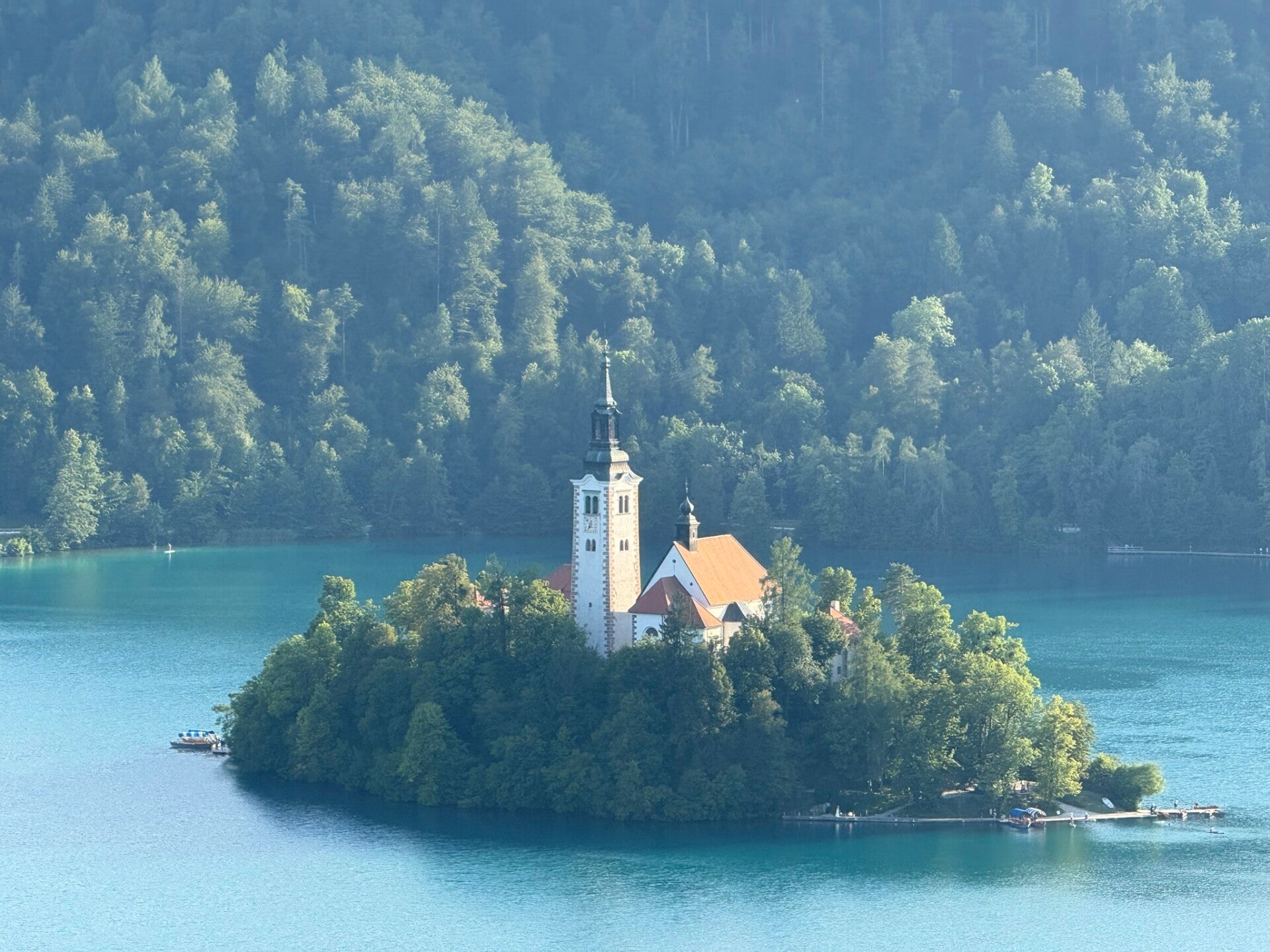 Zelf heb ik het eiland niet bezocht, omdat we maar een avondje in Bled waren om de drukte van overdag te vermijden.